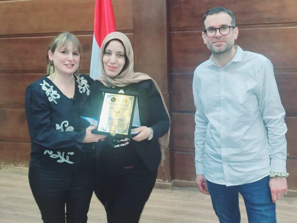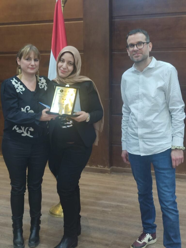 تكريمها عن أعمالها التي عرضتها بالمهرجان الدولي الفرنسي لجائزة سبلست بيير العالمية لعام عشرين خمسة وعشرين كأفضل فنان مصري وعالمي مشارك